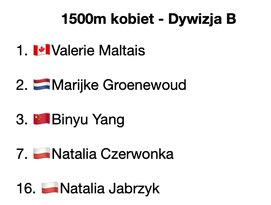 🏆15:13 – 1500m kobiet – Dywizja B – Wyniki