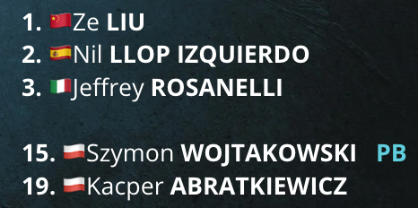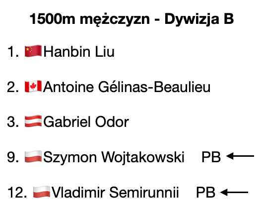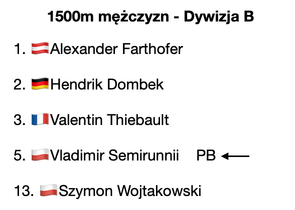 🏆20:17 – 1500m mężczyzn – Dywizja A (🇵🇱V. Semirunnii) – Wyniki