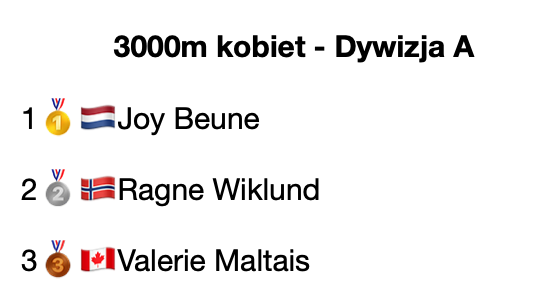 🏆15:16 – 3000m kobiet – Dywizja A – Wyniki