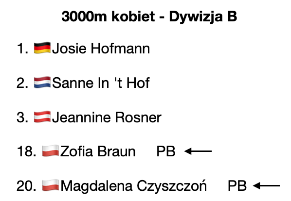 🏆10:06 – 3000m kobiet – Dywizja B (🇵🇱Z. Braun, M. Czyszczoń) – Wyniki