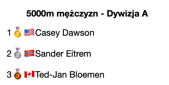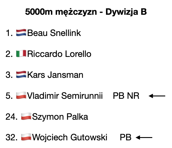 🏆16:12 – 5000m mężczyzn – Dywizja A (🇵🇱V. Semirunnii) – Wyniki