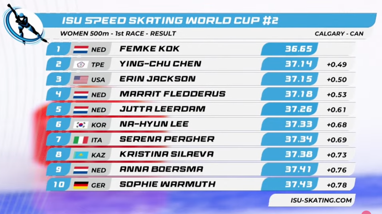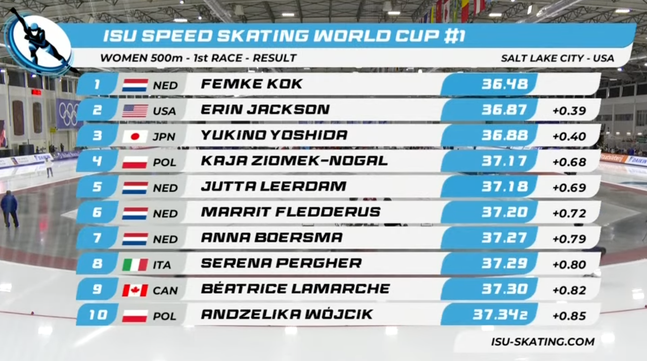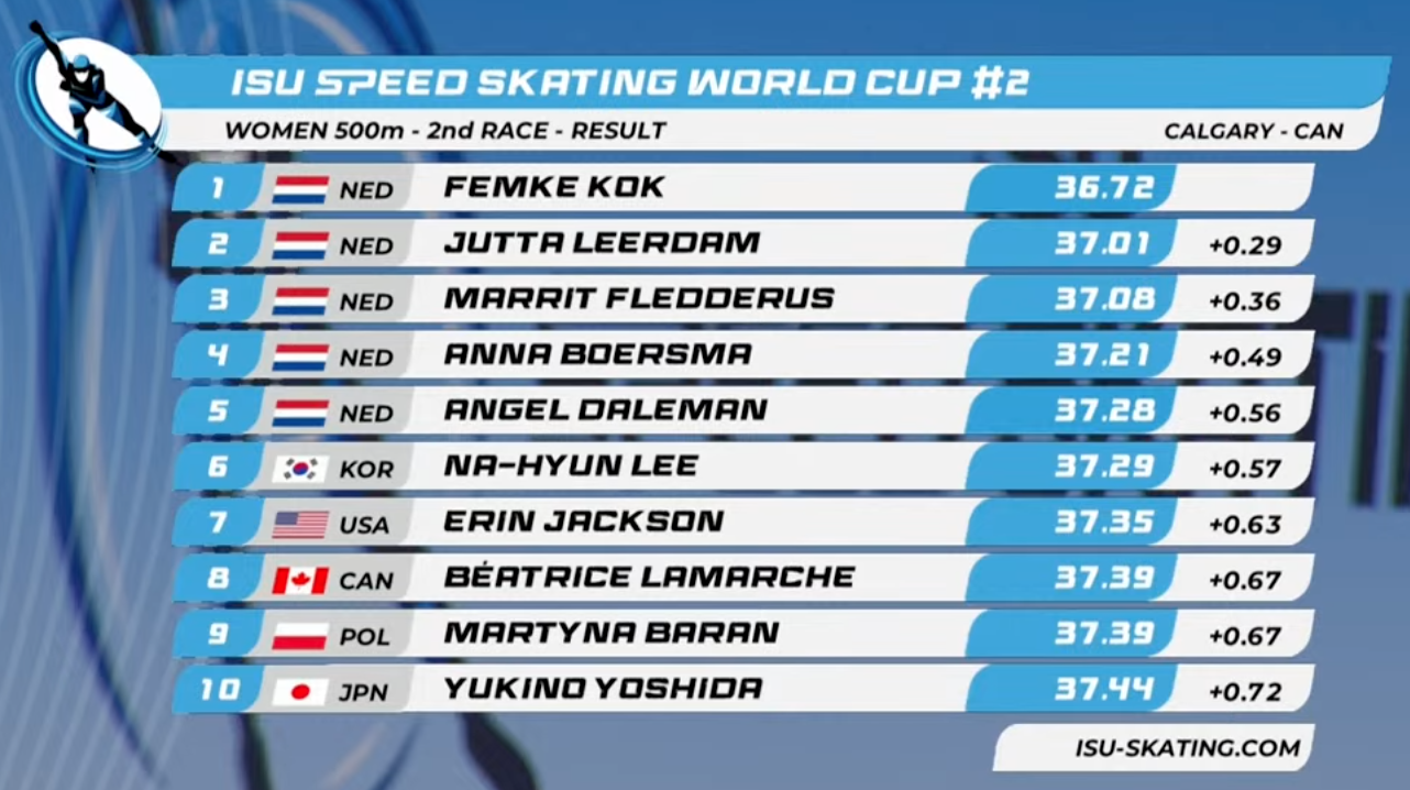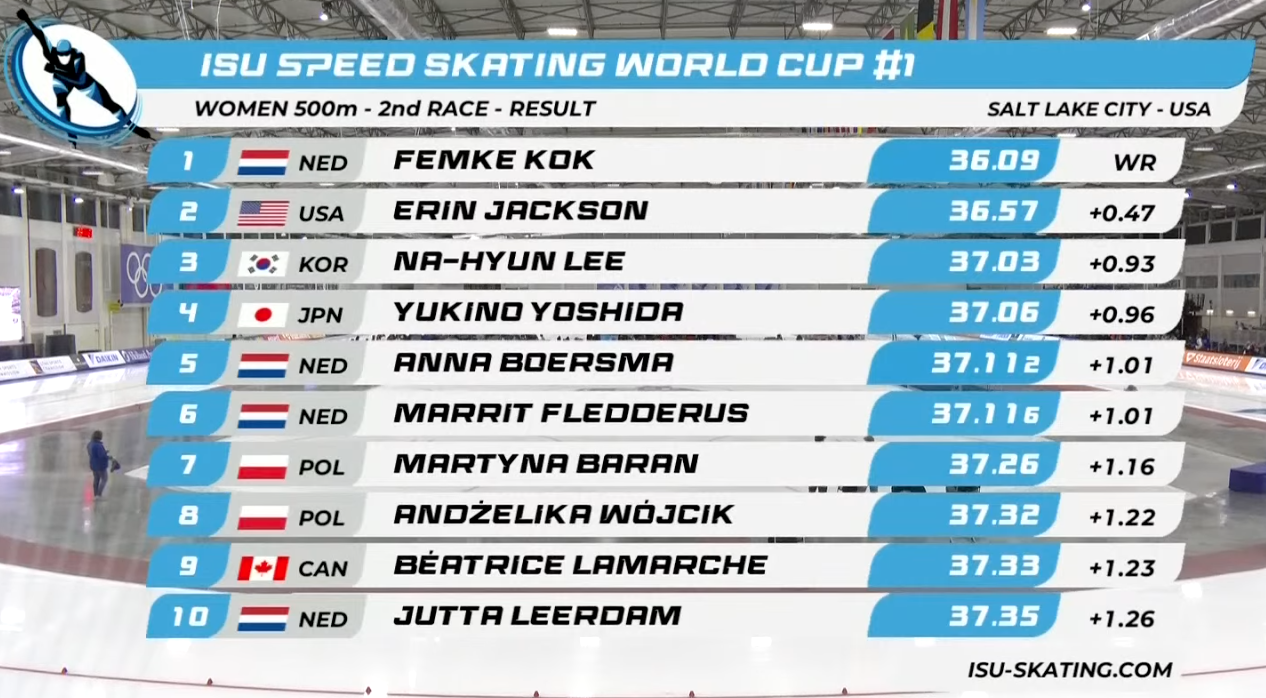 📢🇵🇱Kaja Ziomek- Nogal druga na dystansie 500m podczas zawodów łyżwiarskiego Pucharu Świata w 🇳🇴Hamar! Od Polki szybsza jedynie królowa tego dystansu, Holenderka 🇳🇱Femke Kok, która bije rekord toru!