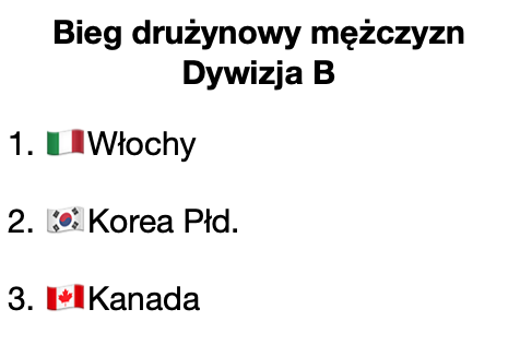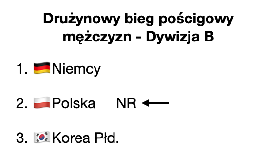🏆09:28 – Drużynowy bieg pościgowy mężczyzn – Dywizja B (🇵🇱Polska) – Wyniki