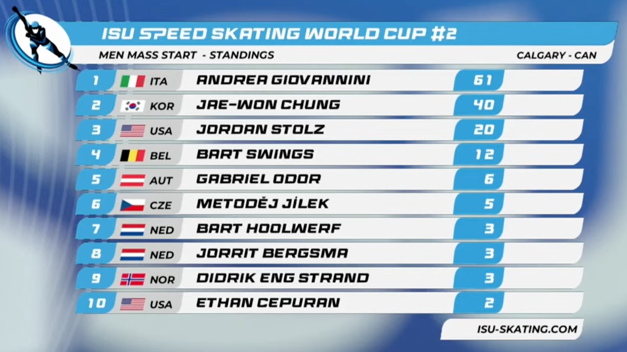 Zobacz również: Puchar Świata w łyżwiarstwie szybkim 2025/2026 – Heerenveen (5-7 grudnia) | Puchar Świata w łyżwiarstwie szybkim 2025/2026 – Calgary (21-23 listopada) | Puchar Świata w łyżwiarstwie szybkim 2025/2026 – Salt Lake City (14-16 listopada) | Kalendarz Pucharu Świata w łyżwiarstwie szybkim na sezon 2025/2026