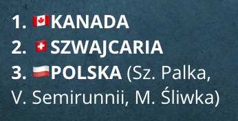 🏆14:33 – 1000m mężczyzn – Dywizja A (🇵🇱D. Żurek, P. Michalski, Sz. Wojtakowski) – Wyniki